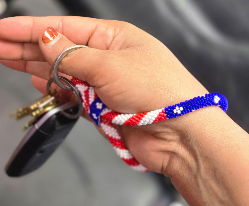 🇺🇸 Patriotic Design – Features red, white, and blue handmade glass beads to celebrate the American spirit in style. ✋ Hands-Free Convenience – Easily slips on your wrist to keep your keys secure while shopping, traveling, or running errands. 🎨 Stylish & Functional – Doubles as a fashion accessory and...